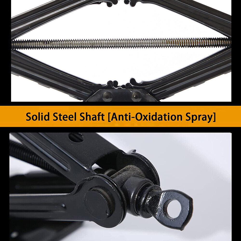 The scissor jack, with tooth gears, can extend from 110mm(close position) to 400mm, more than enough to lift most vehicles. Easy to operate using the chromed crank with speed handle.